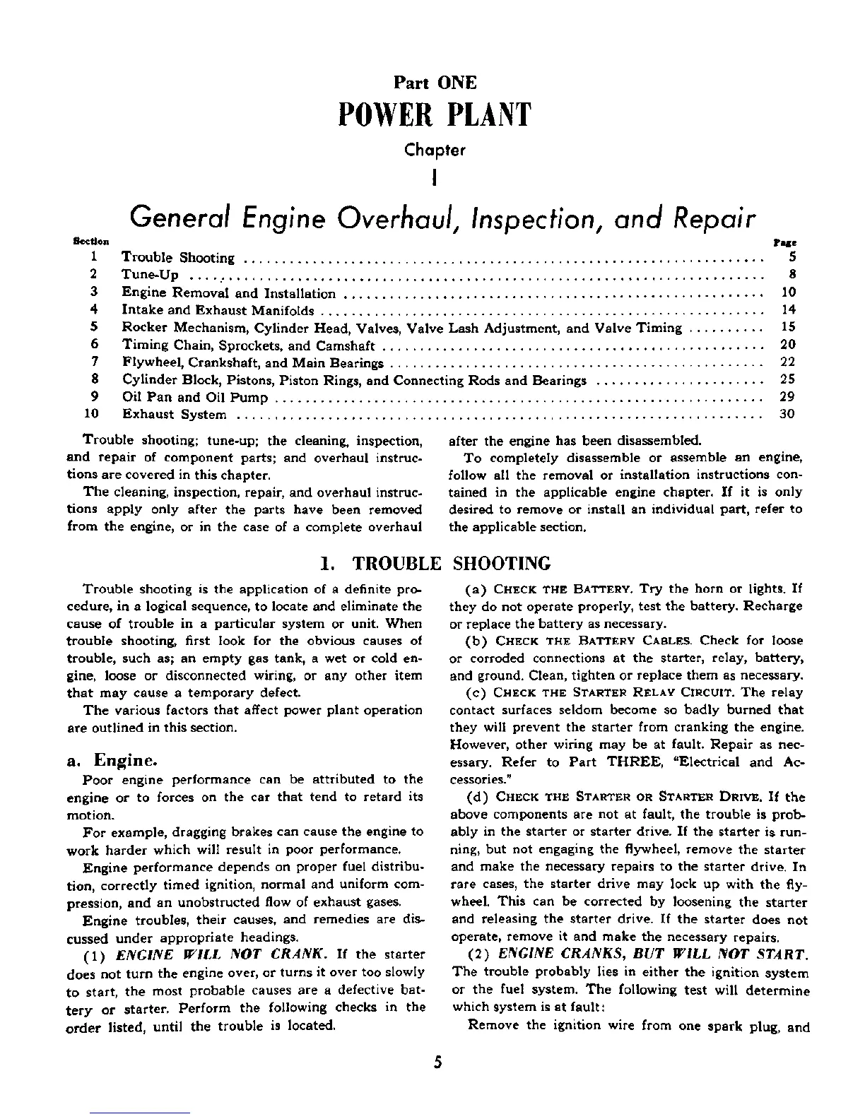 Ford 1956 - Chapter I General Engine Overhaul, Inspection, and Repair; 1. TROUBLE SHOOTING
