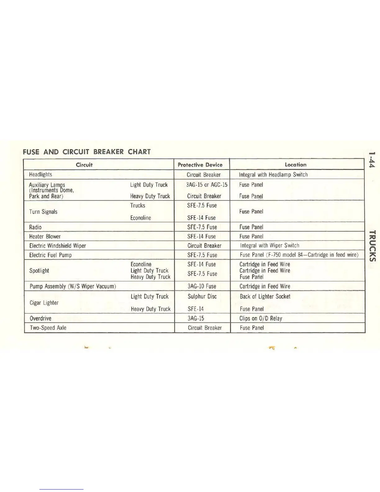 Ford 1963 Thunderbird - Fuse and Circuit Breaker Chart