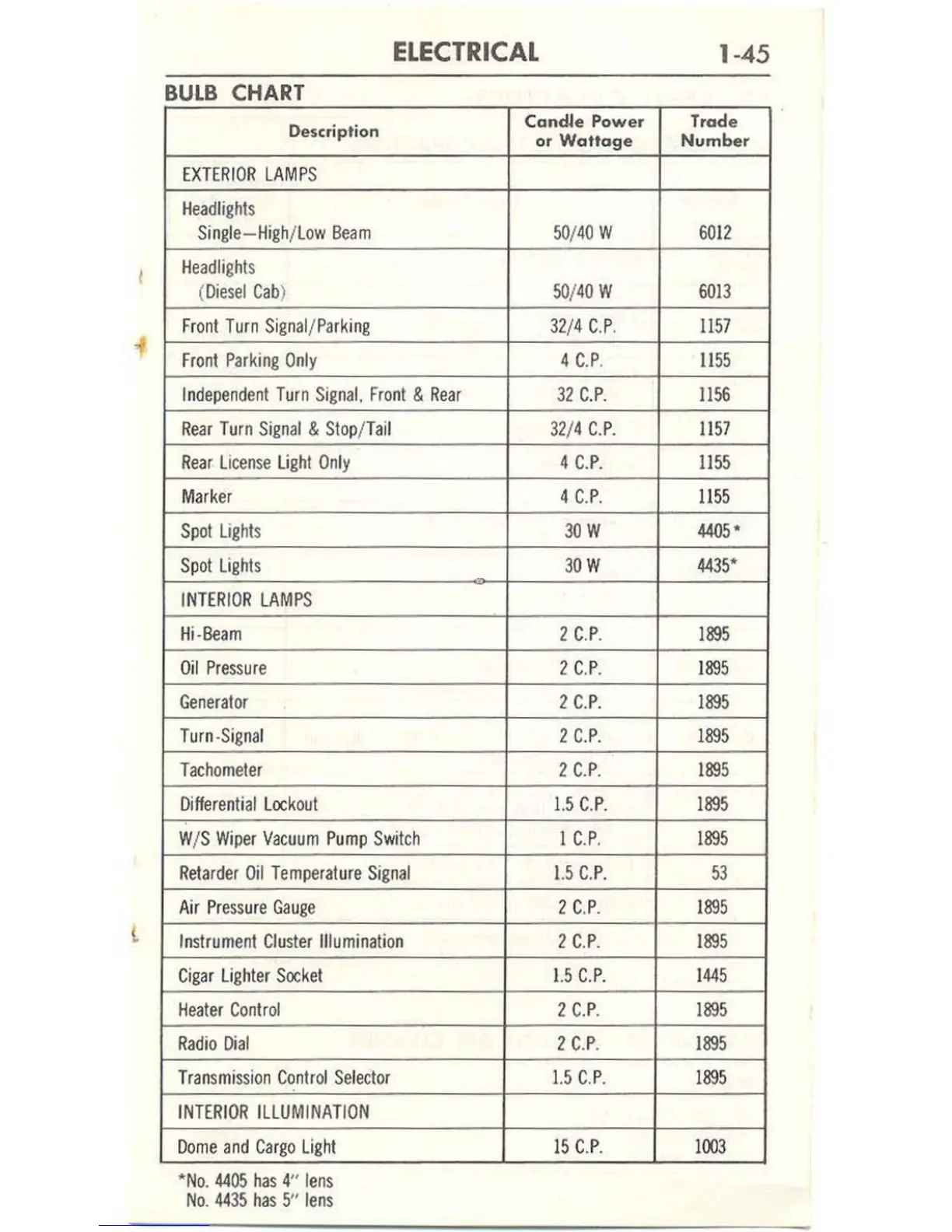 Ford 1963 Thunderbird - Bulb Chart