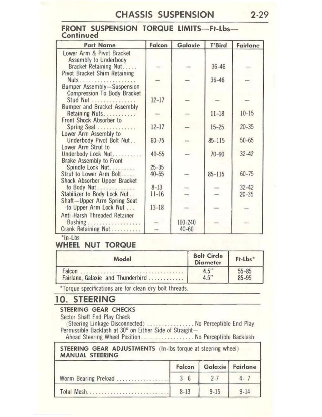 Ford 1963 Thunderbird - Steering
