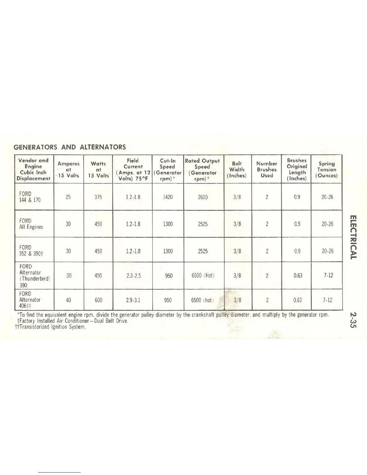 Ford 1963 Thunderbird - Generators and Alternators (Cars)