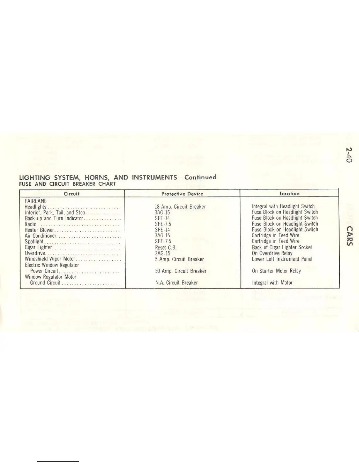 Ford 1963 Thunderbird - Fuse and Circuit Breaker Chart (Cars)