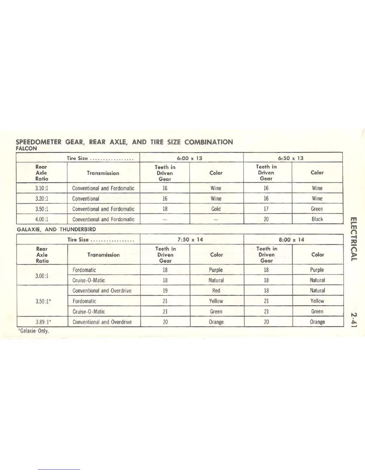 Ford 1963 Thunderbird - Speedometer Gear, Rear Axle, and Tire Size Combination (Cars)
