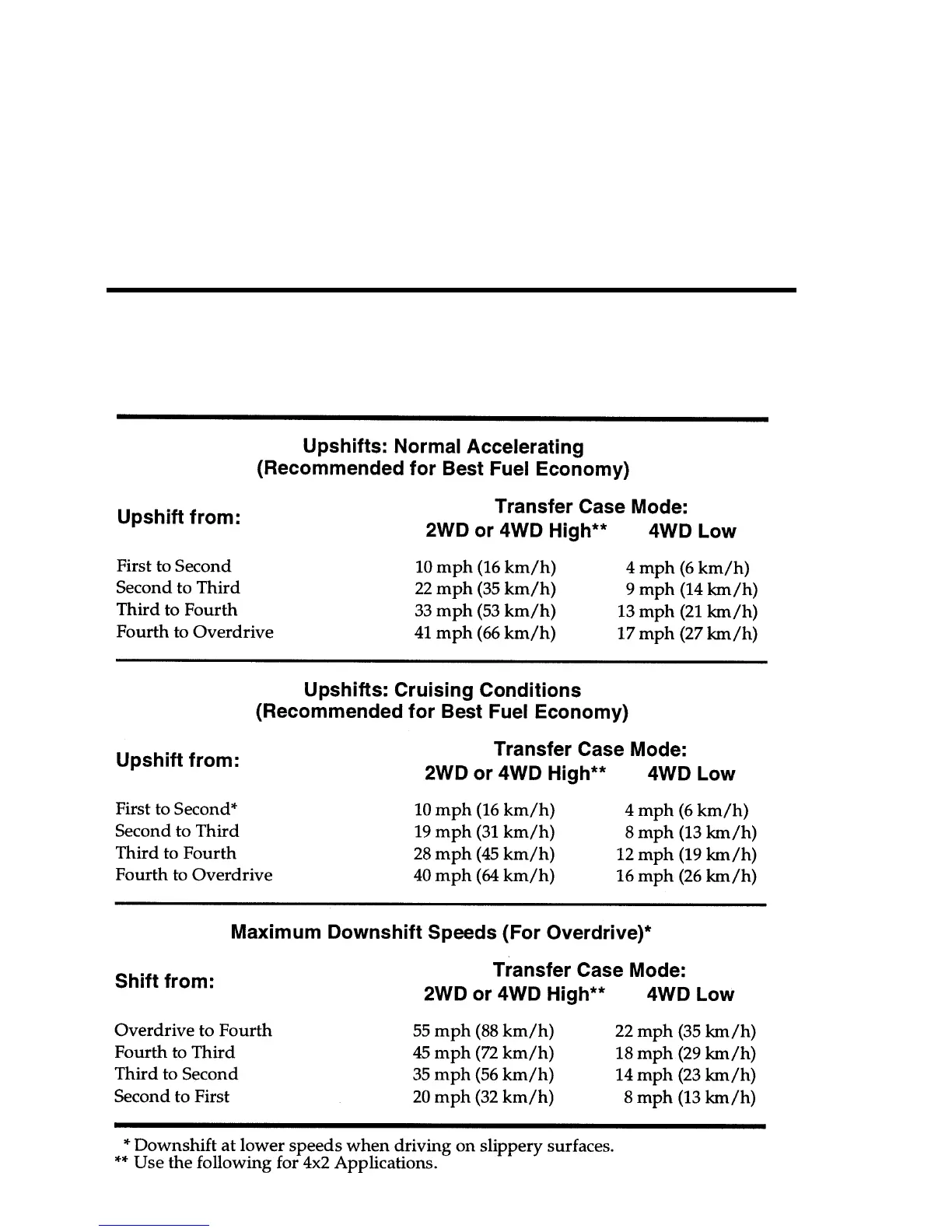 Ford 1996 Explorer - Recommended Shift Speeds; Engines with 5-Speed Manual Overdrive Transmission