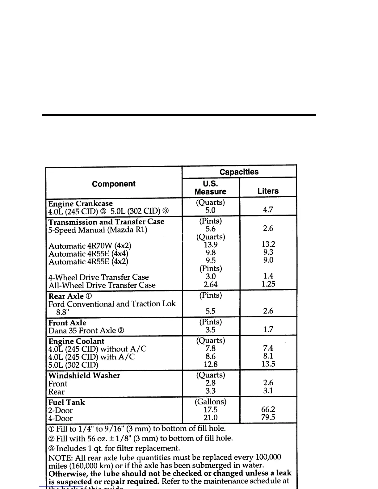 [SV51575(ALL)07/95] Refill Capacities, Motorcraft Parts, and