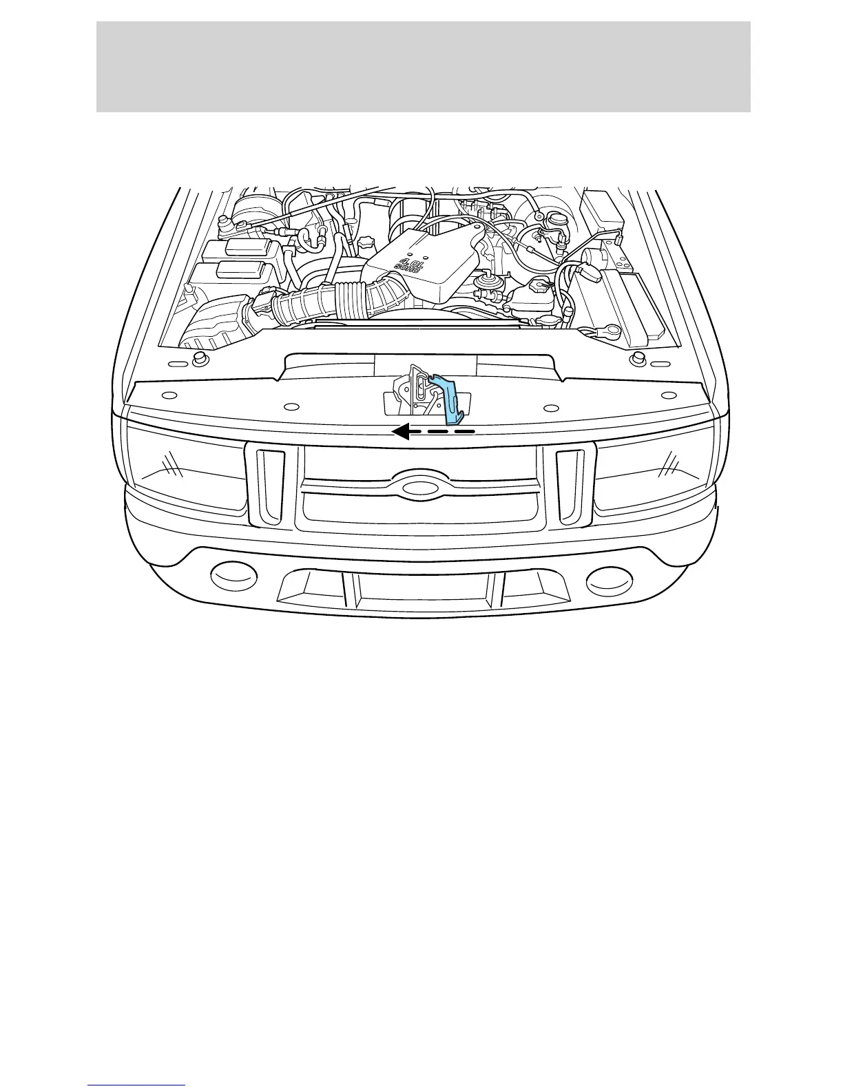 2. Go to the front of the vehicle and release the auxiliary latch that is