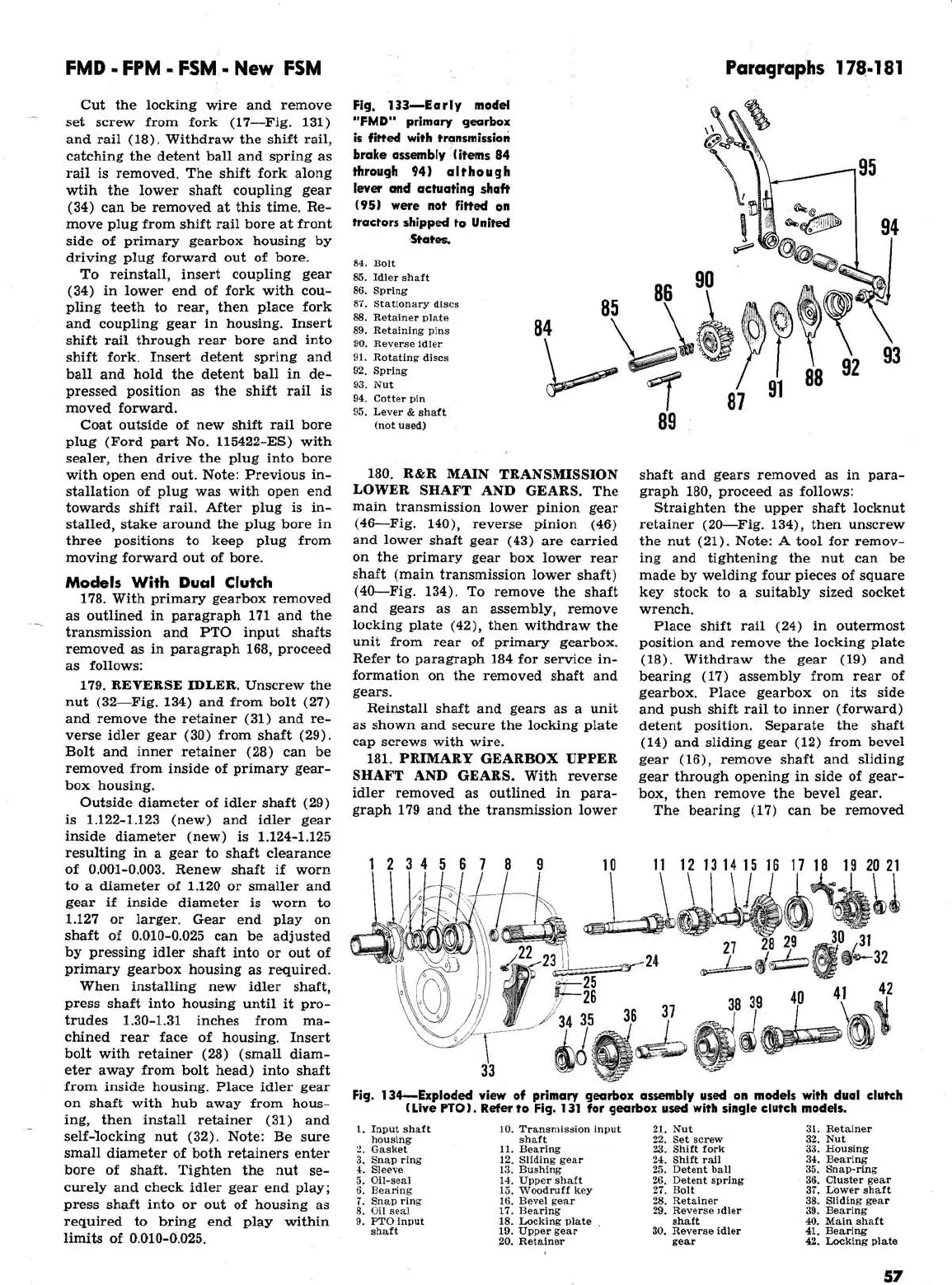 Ford 2000 super dexta - Early Model FMD Primary Gearbox Exploded View; Models with Dual Clutch