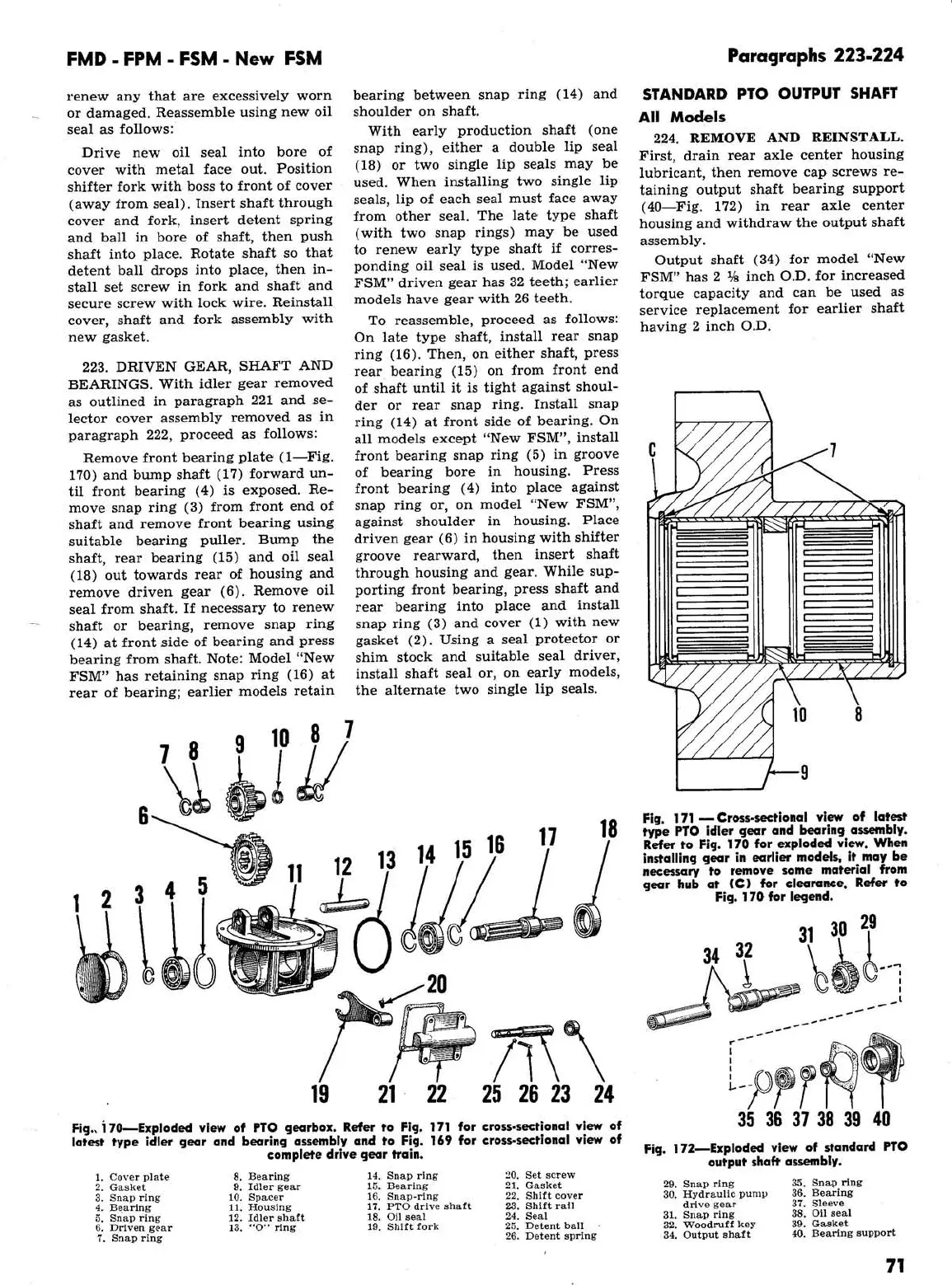 Ford 2000 super dexta - FMD, FPM, FSM, New FSM: Standard PTO Output Shaft; FMD, FPM, FSM, New FSM: Exploded Viw of PTO Gearbox; FMD, FPM, FSM, New FSM: Exploded View of Standard PTO Output Shaft Assembly; FMD, FPM, FSM, New FSM: Cross-Sectional View of Latest Type PTO Idler Gear and Bearings Assembly