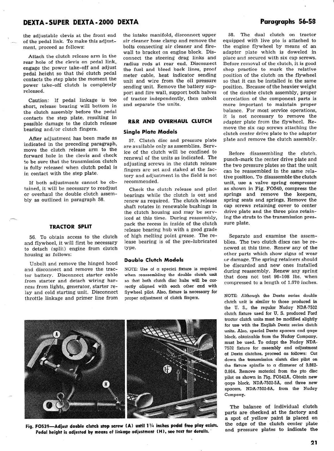 Ford 2000 super dexta - Tractor Split; R&R and Overhaul Clutch; Single Plate Models; Double Clutch Models