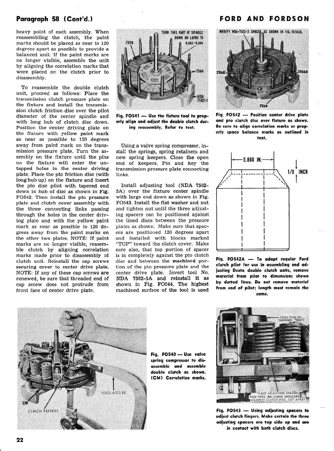 Ford 2000 super dexta - Aligning and Adjusting the Double Clutch During Reassembly; Center Drive Plate and Pto Clutch Illustration; Double Clutch Asssembly Illustration; Clutch Fingers Adjustment Illustration