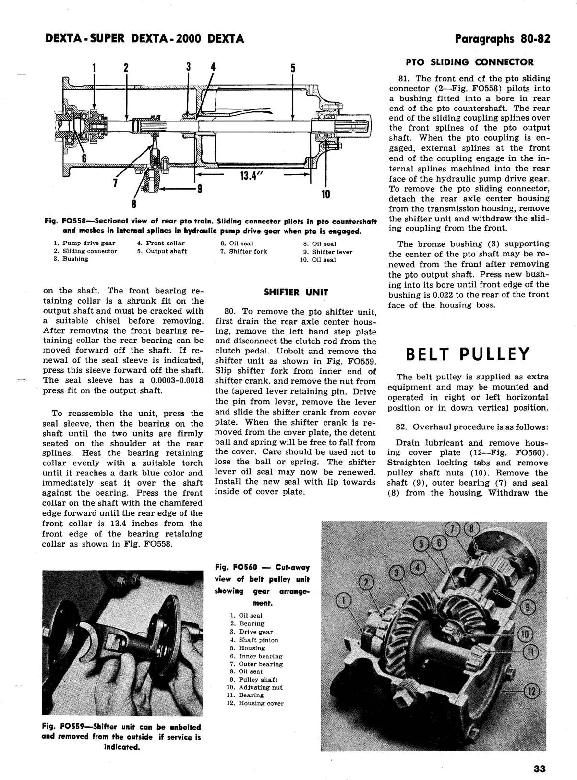 Ford 2000 super dexta - Belt Pulley Overhaul; Shifter Unit; Pto Sliding Connector; Rear Pto Train Sectional View