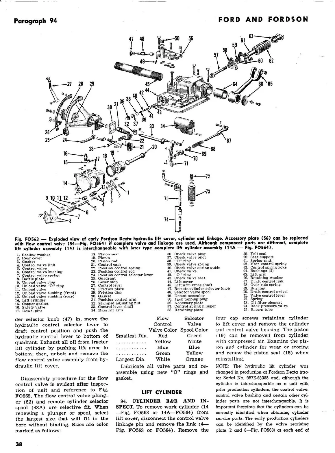 Ford 2000 super dexta - Exploded View of Early Fordson Dextra Hydraulic Lift Cover, Cylinder and Linkage; Lift Cylinder; Cylinder R&R and Inspect