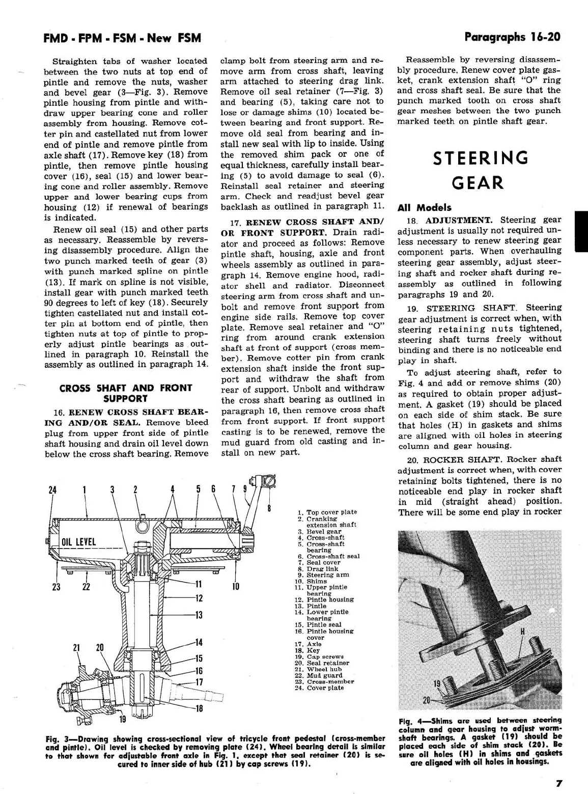 Ford 2000 super dexta - FMD, FPM, FSM, New FSM: Steering Gear; FMD, FPM, FSM, New FSM: Cross Shaft and Front Support; FMD, FPM, FSM, New FSM: Cross-Sectional View of Tricycle Front Pedestal