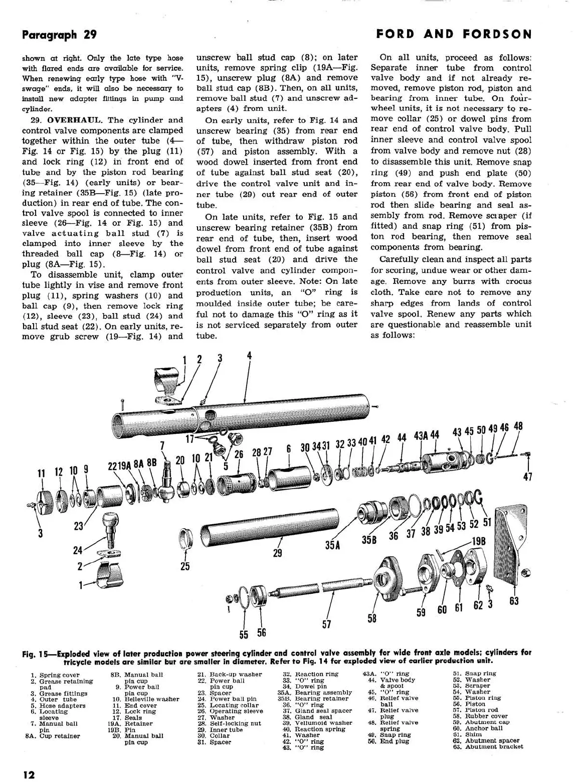 Ford 2000 super dexta - FMD, FPM, FSM, New FSM: Exploded View of Later Production Power Steering Cylinder and Control Valve Assembly for Wide Front Axle Models