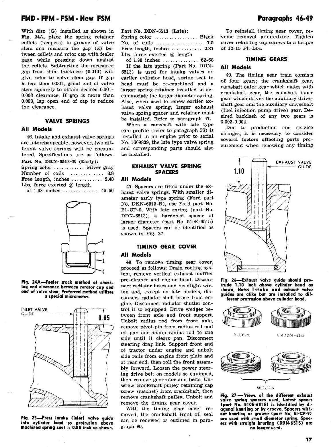 Ford 2000 super dexta - FMD, FPM, FSM, New FSM: Valve; FMD, FPM, FSM, New FSM: Exhaust Valve Spring Spacers; FMD, FPM, FSM, New FSM: Timing Gear Cover;Timing Gears; FMD, FPM, FSM, New FSM: Feeler Stock Method of Checking End Clearance between Rotator Cap and End of Valve Stem