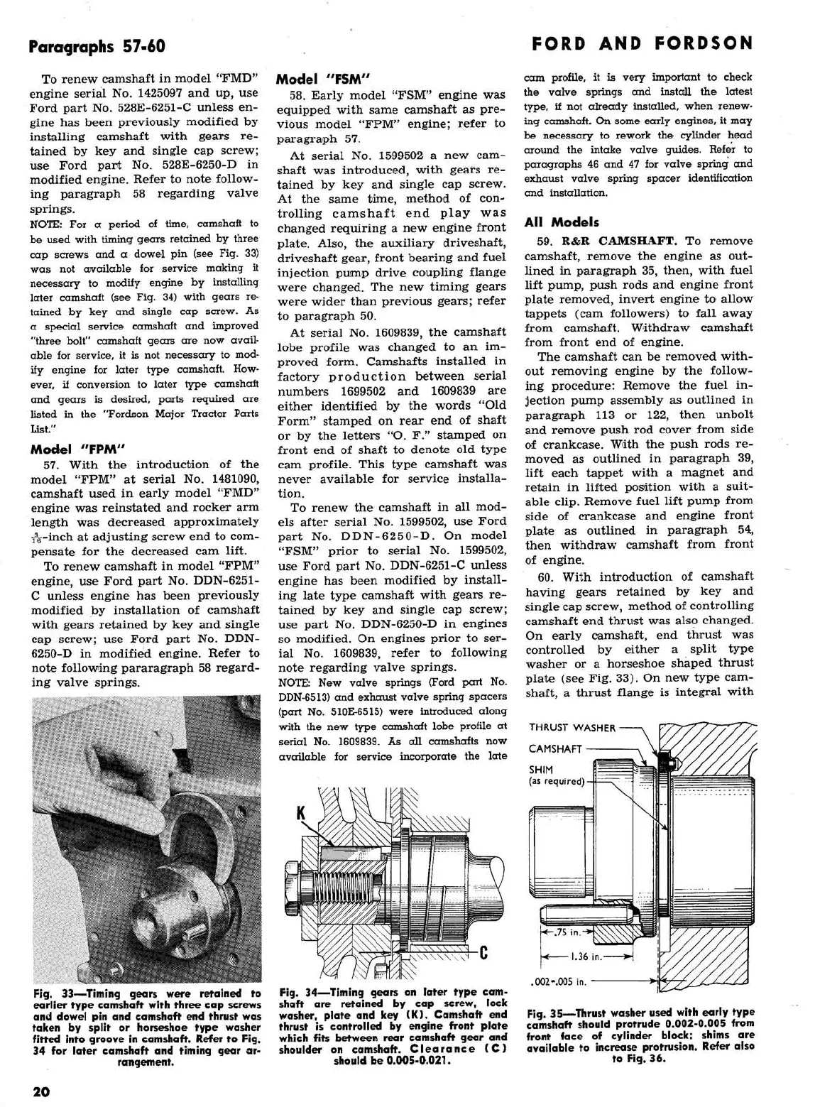 Ford 2000 super dexta - FMD, FPM, FSM, New FSM: Timing Gears Views; FMD, FPM, FSM, New FSM: Thrust Washer View