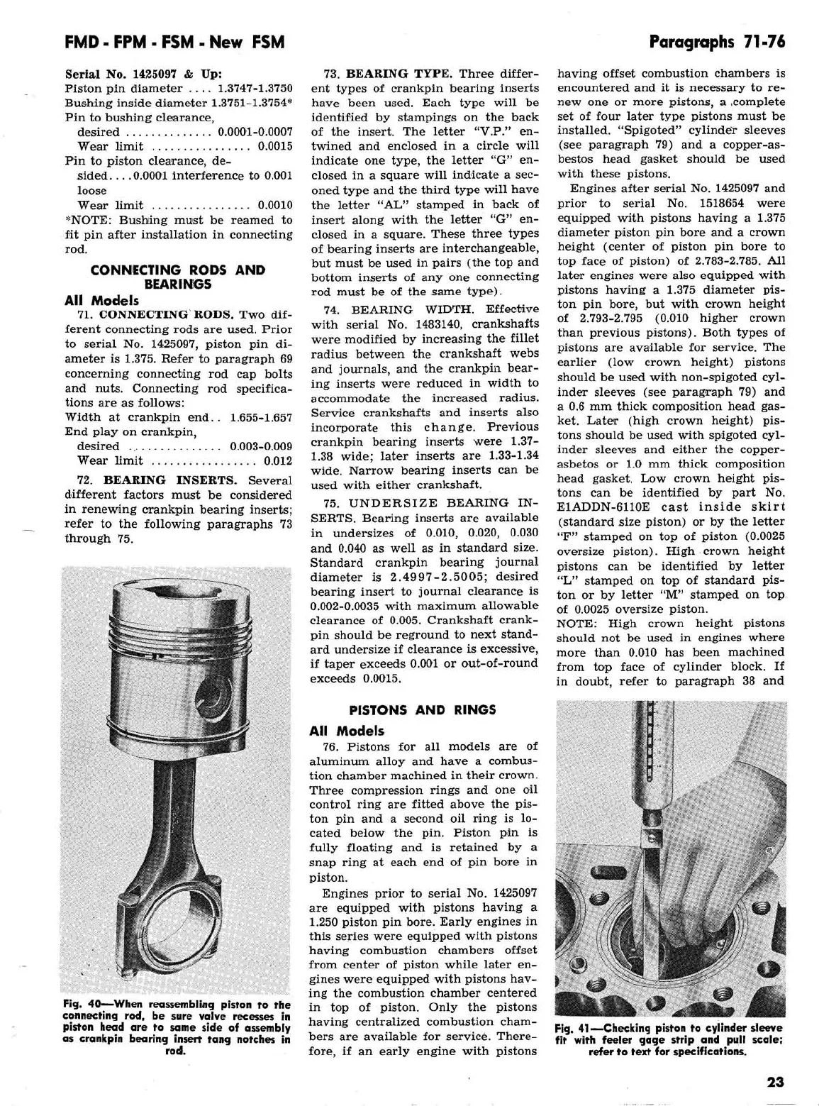 Ford 2000 super dexta - FMD, FPM, FSM, New FSM: Connecting Rods and Bearings; FMD, FPM, FSM, New FSM: Pistons and Rings; FMD, FPM, FSM, New FSM: Checking Piston to Cylinder Sleeve Fit with Feeler Gage and Pull Scale