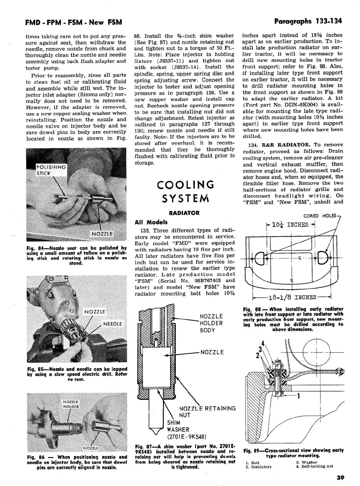 Ford 2000 super dexta - FMD, FPM, FSM, New FSM: Cooling System; FMD, FPM, FSM, New FSM: Radiator; FMD, FPM, FSM, New FSM: Cross-Sectional View Showing Early Type Radiator Mounting; FMD, FPM, FSM, New FSM: Shim Washer Installed between Nozzle and Retaining Nut View