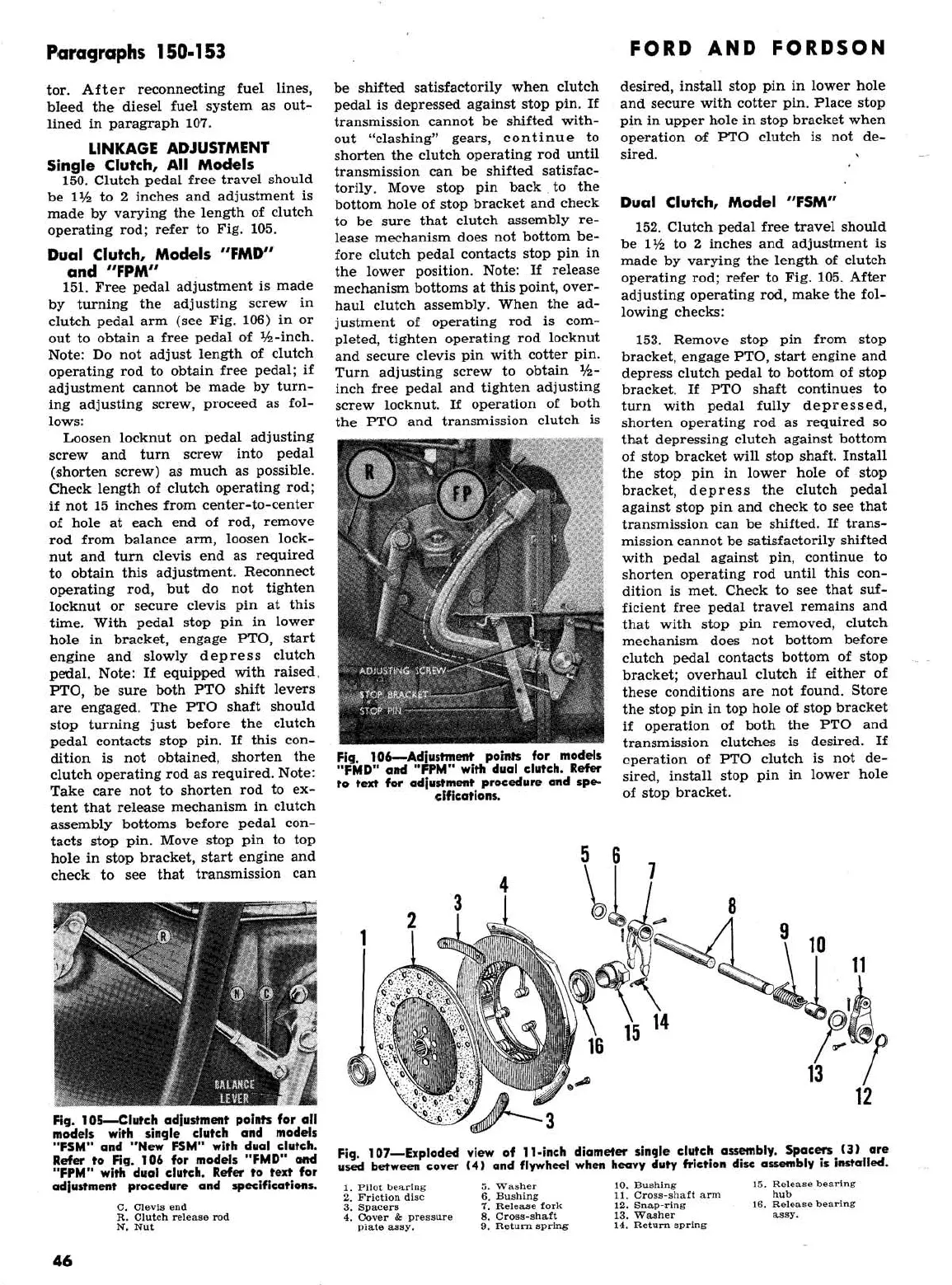 Ford 2000 super dexta - FMD, FPM, FSM, New FSM: Linkage Adjustment; FMD, FPM, FSM, New FSM: Exploded View of 11-Inch Diameter Single Clutch Assembly