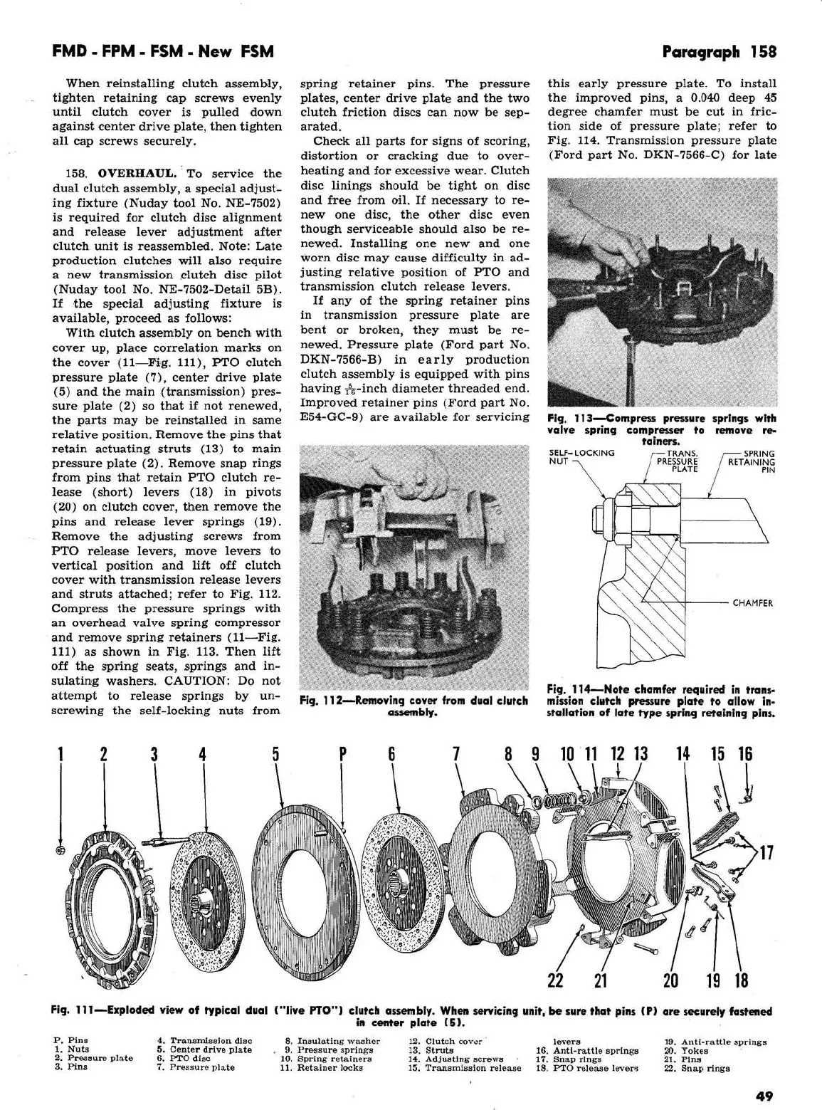 Ford 2000 super dexta - FMD, FPM, FSM, New FSM: Exploded View of Typical (Live PTO) Clutch Assembly; FMD, FPM, FSM, New FSM: Removing Cover from Dual Clutch Assembly