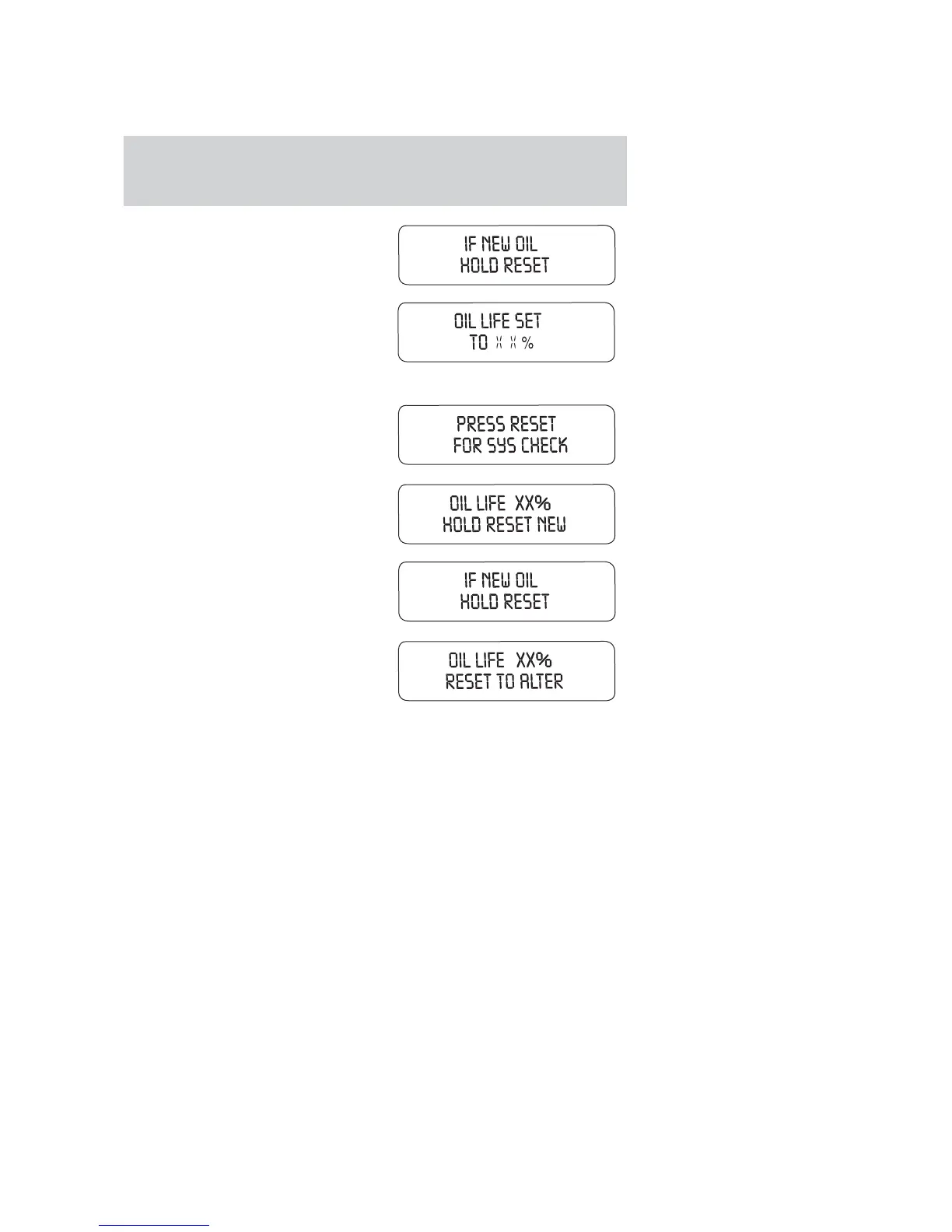 display OIL LIFE XX% RESET TO