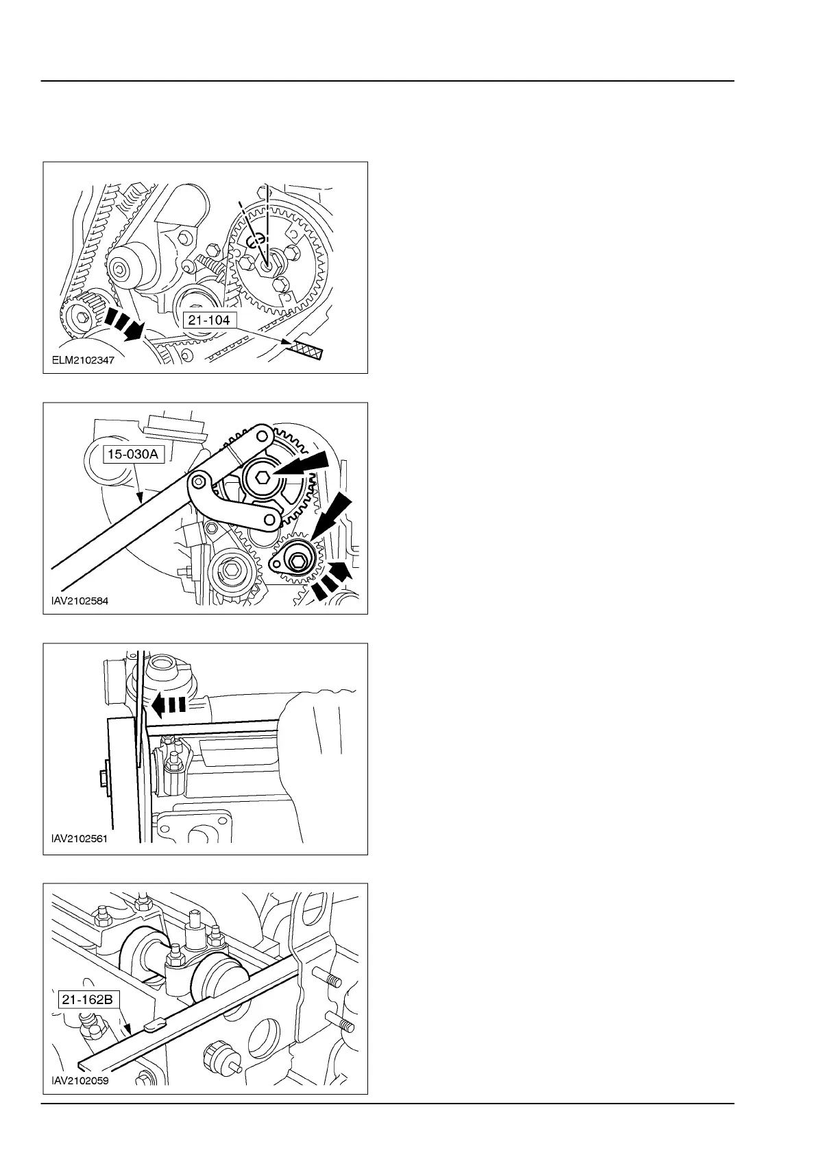 64. Preparations for tensioning the timing belts.