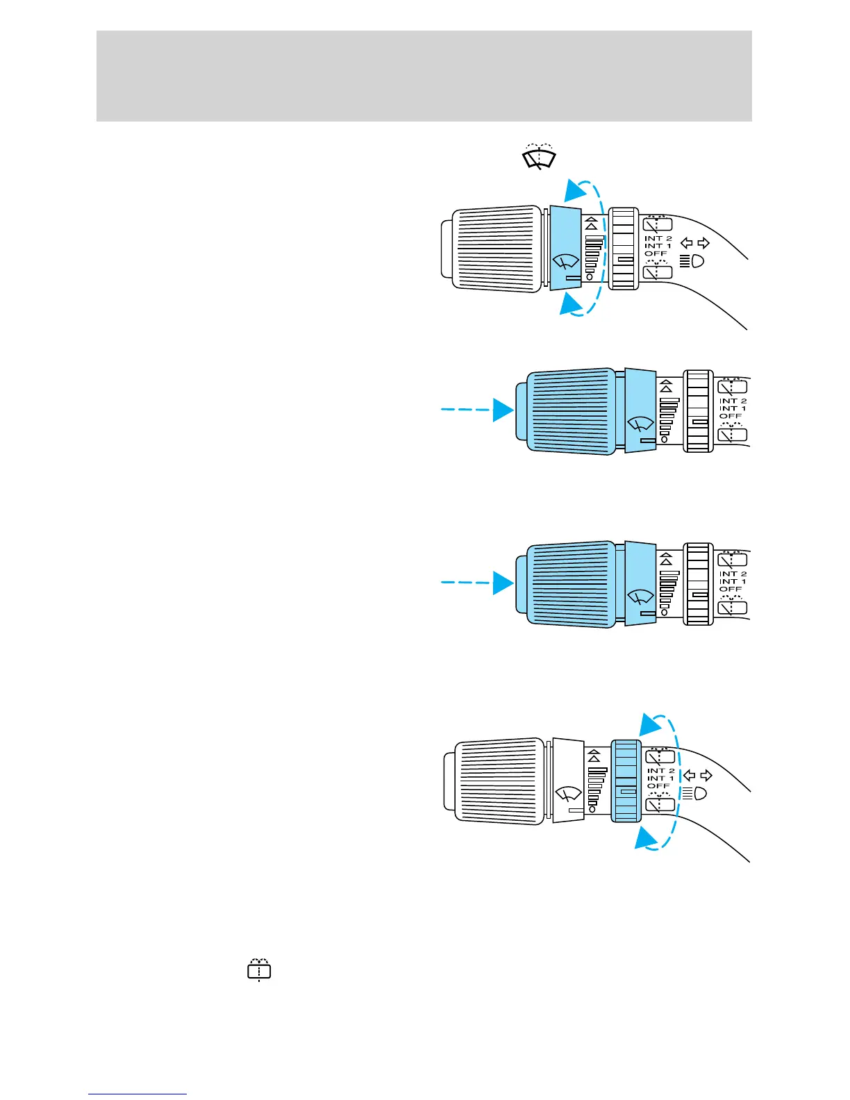For rear wash cycle, rotate (and hold as desired) the rear wiper/washer
