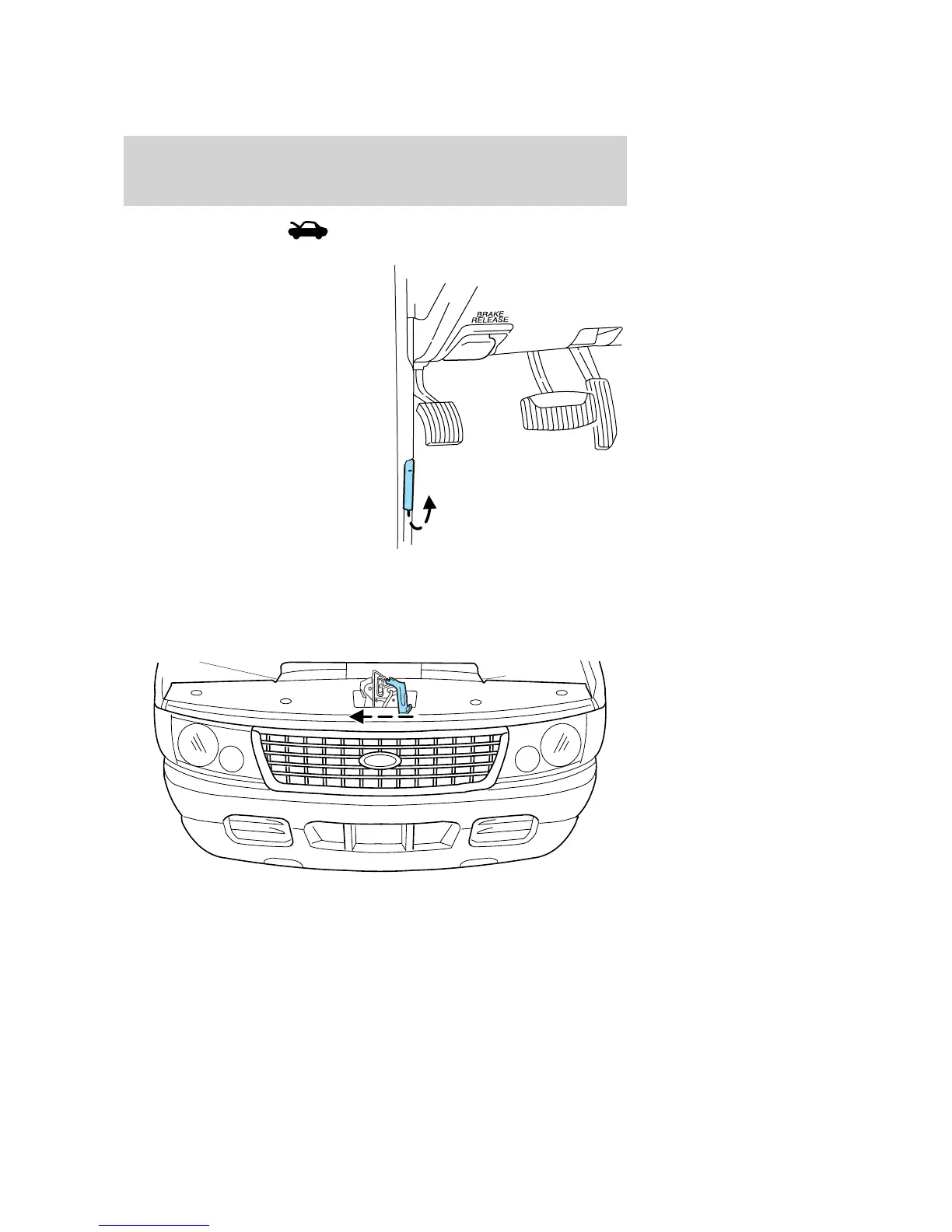 2. Go to the front of the vehicle and release the auxiliary latch that is