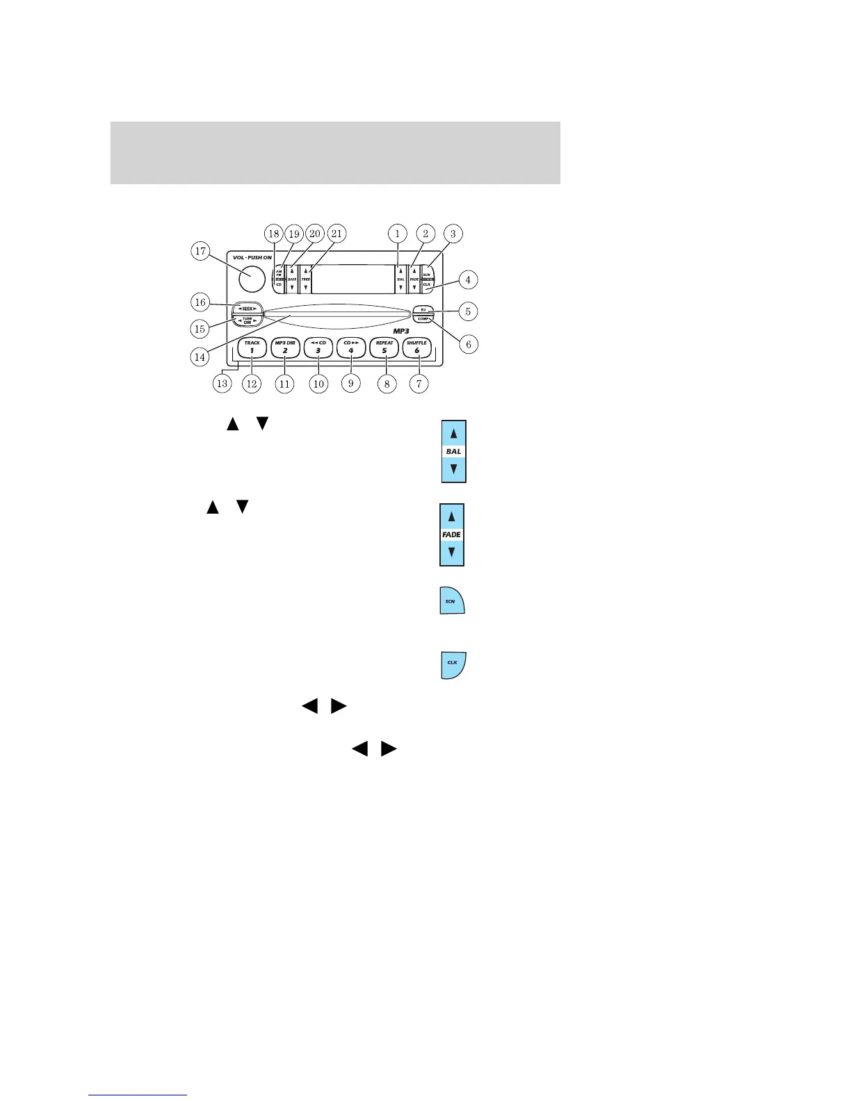 stations, CD or MP3 tracks. Press