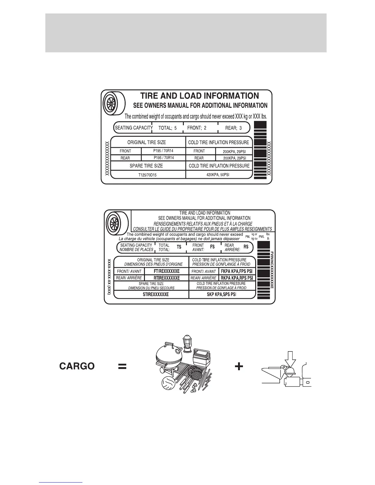 including cargo and optional equipment. When towing, trailer tongue load