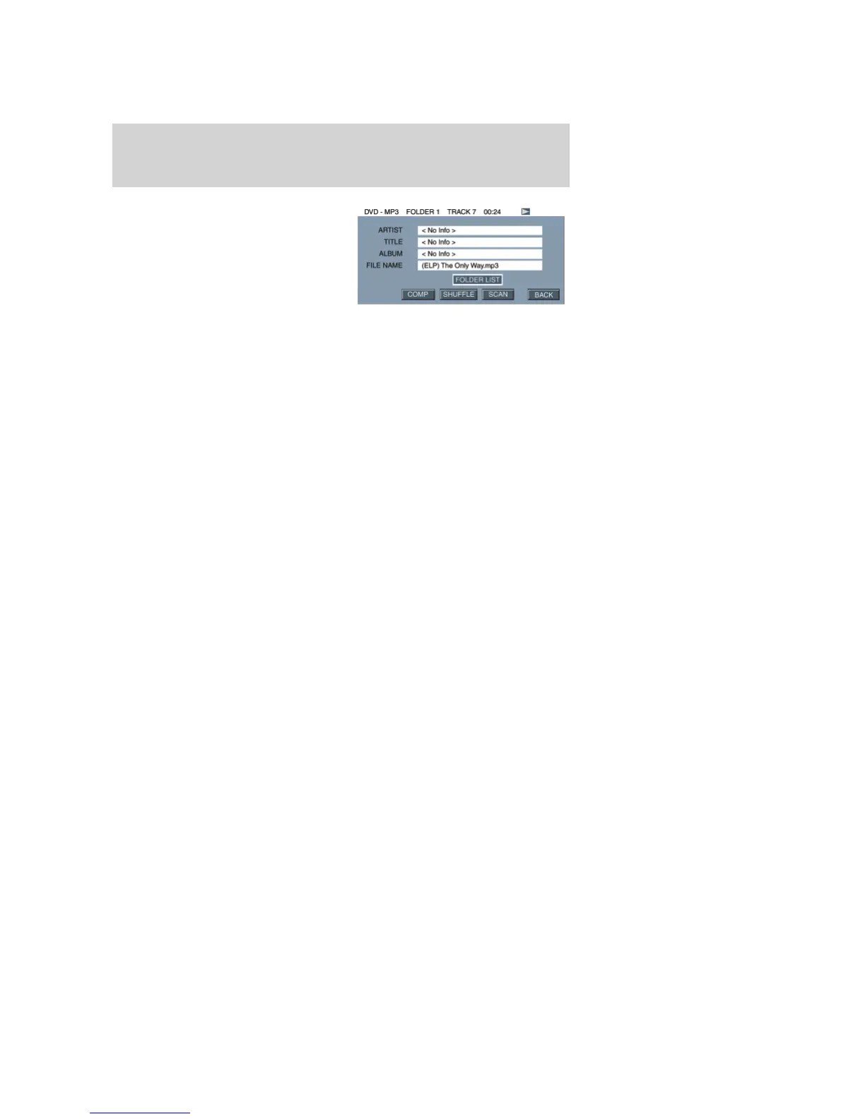 SCAN: Press for a brief sampling of all tracks on the current MP3 folder.