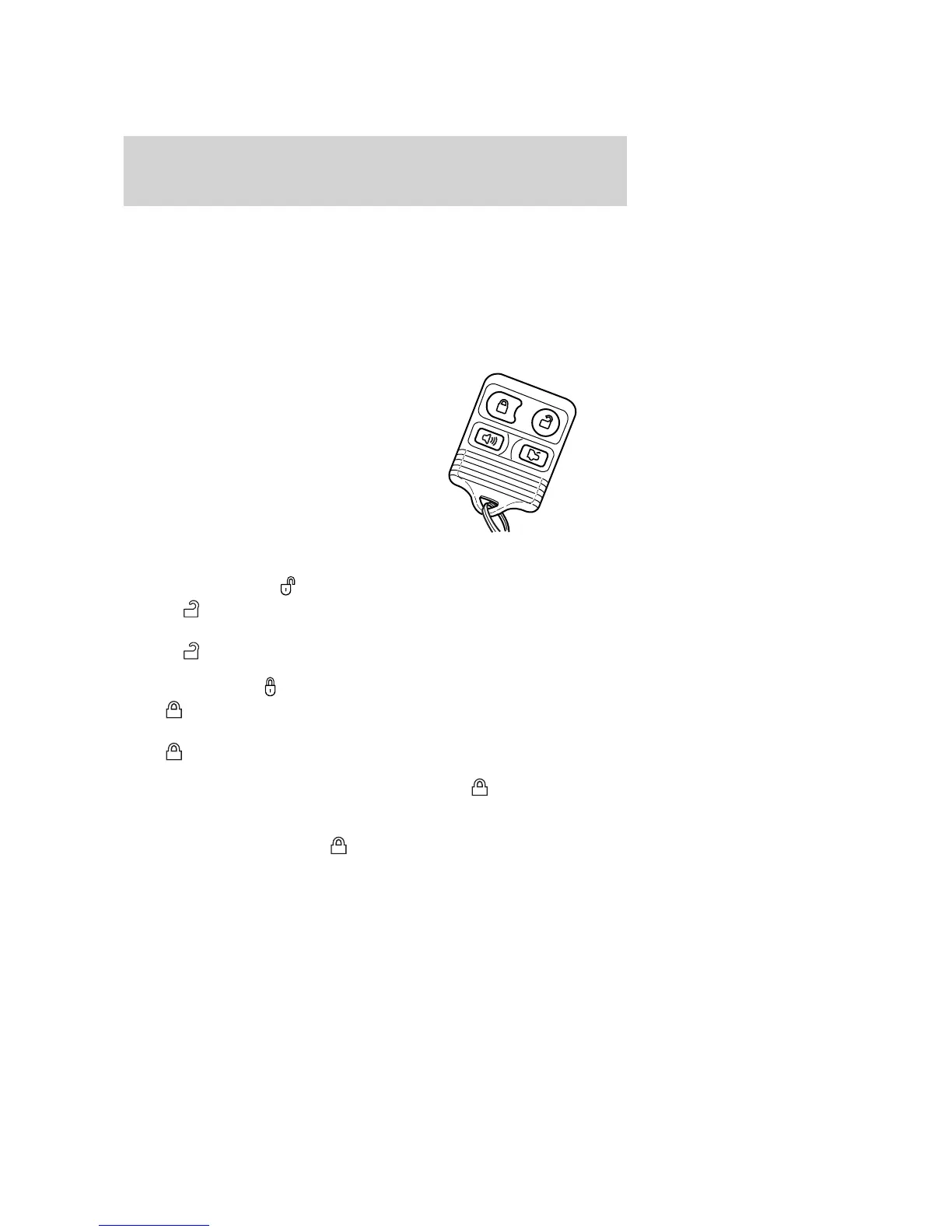 1. Press and release to unlock the driver’s door. Note: The interior
