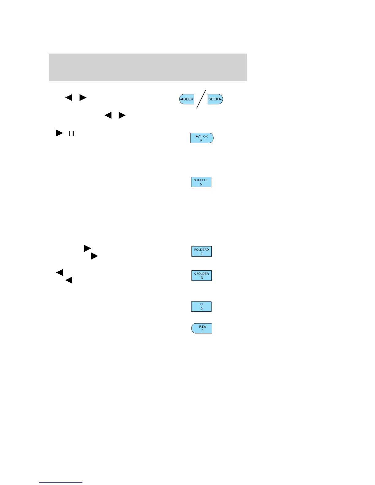 a CD/MP3 is playing, press to pause or play the current CD/MP3. The