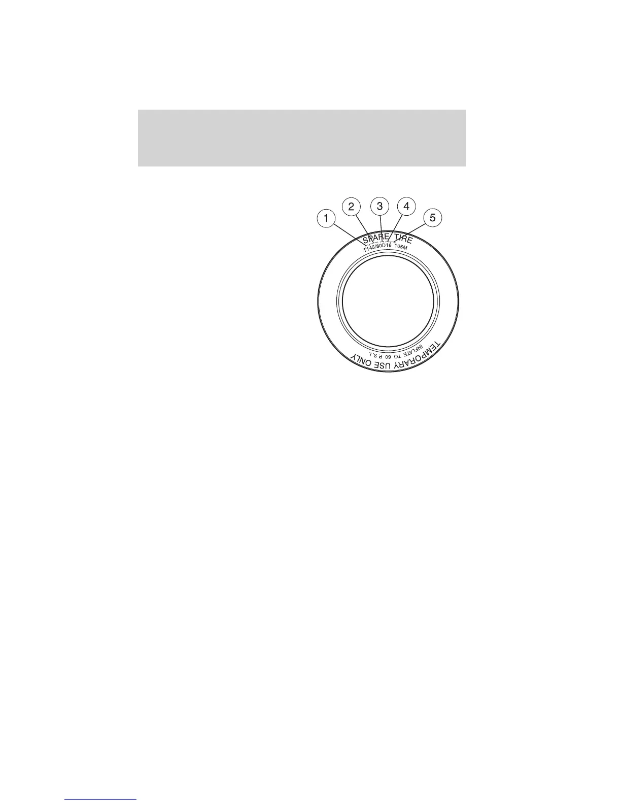 Note: The temporary tire size for