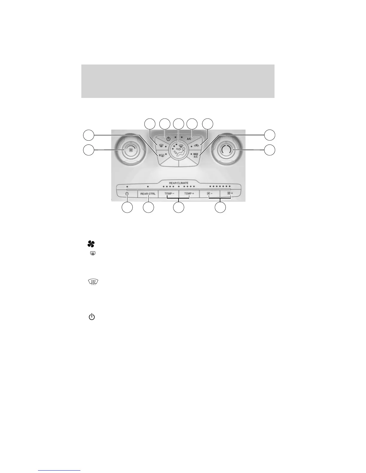 (Power): Press to activate/deactivate the climate control system.