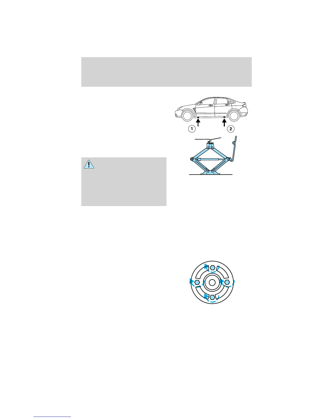 hub. Do not fully tighten the lug nuts until the wheel has been lowered.