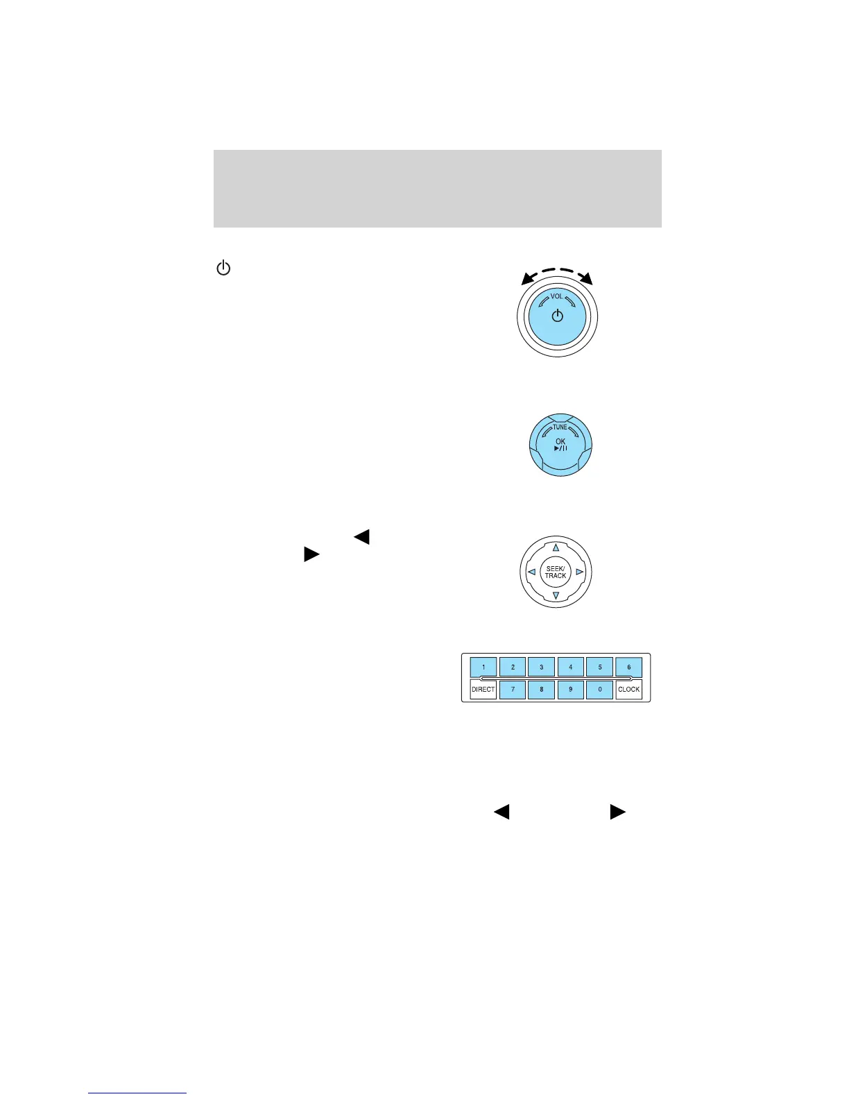 AM/FM: Press repeatedly to select AM/FM1/FM2 frequency band.