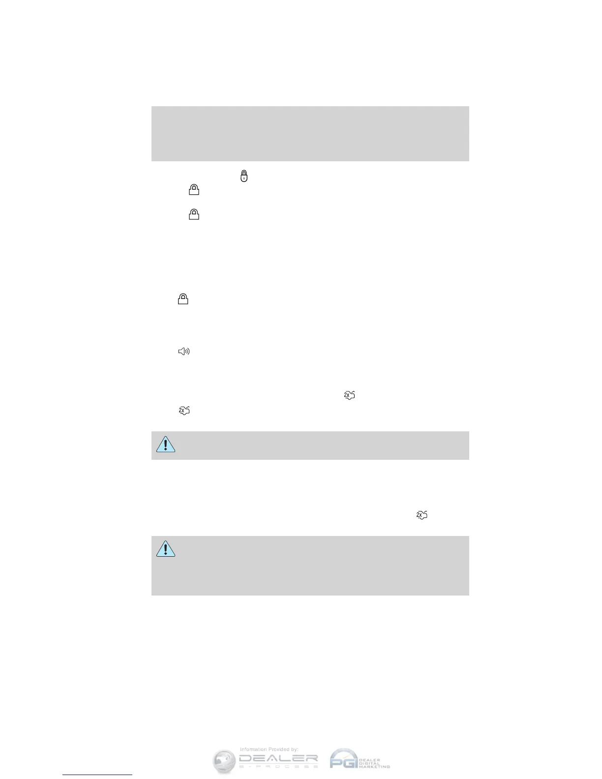 the doors are closed. Note: The doors will lock again, the horn will chirp