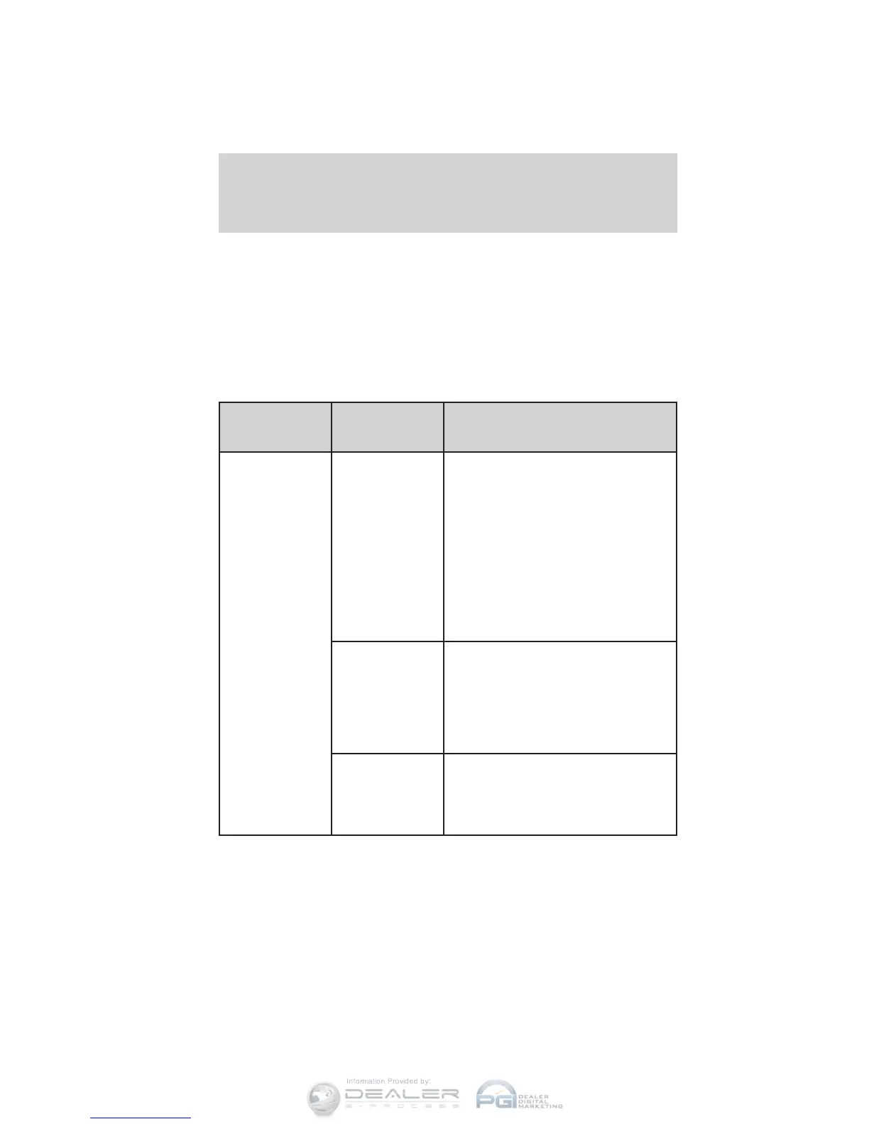 chart for information concerning your tire pressure monitoring system:
