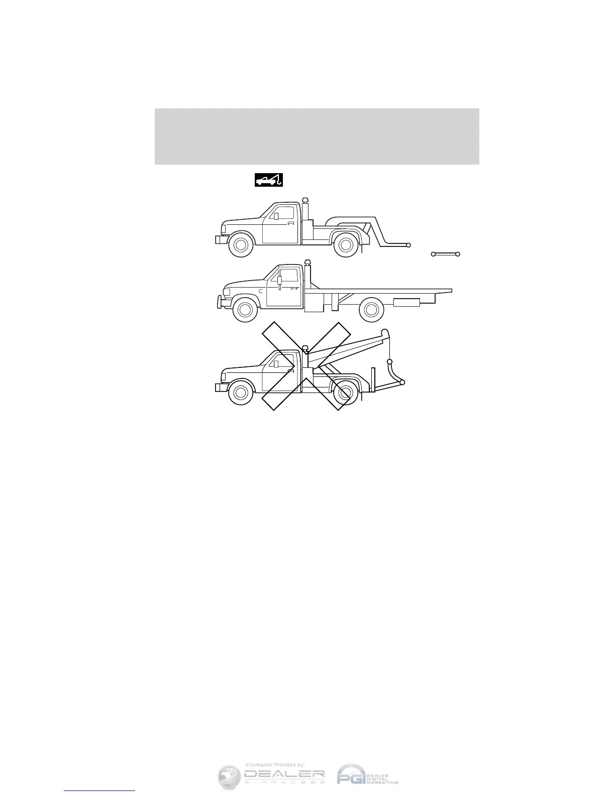 dollies or flatbed equipment. Do not tow with a slingbelt. Ford Motor