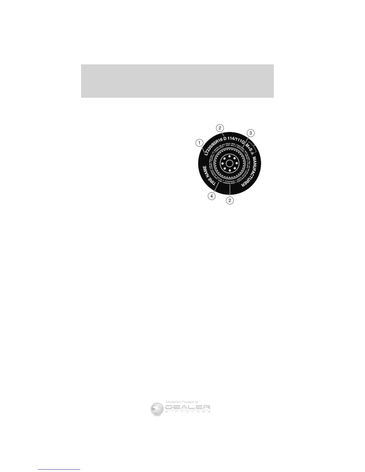 Additional information contained on the tire sidewall for “LT” type
