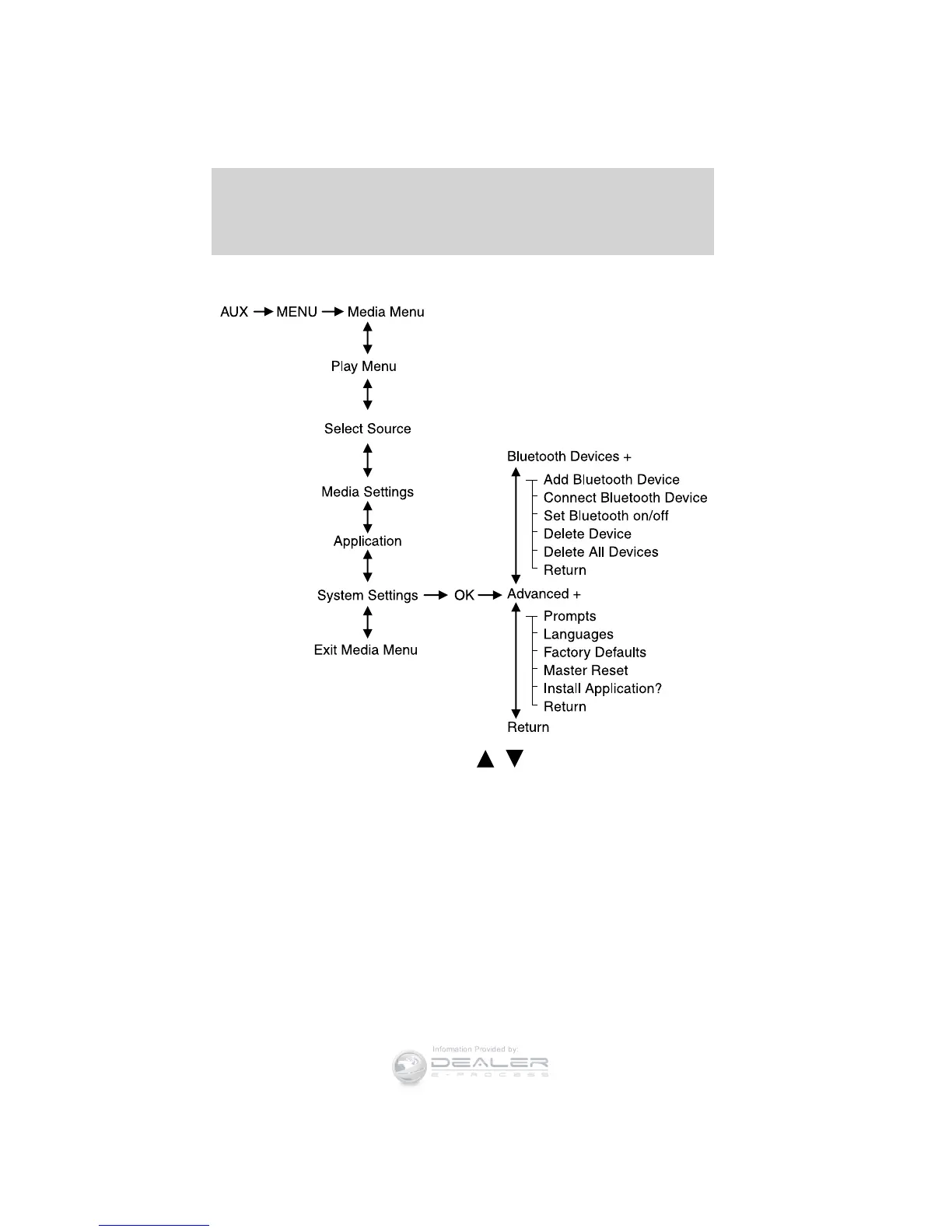 1. Press AUX and then MENU to enter the Media Menu