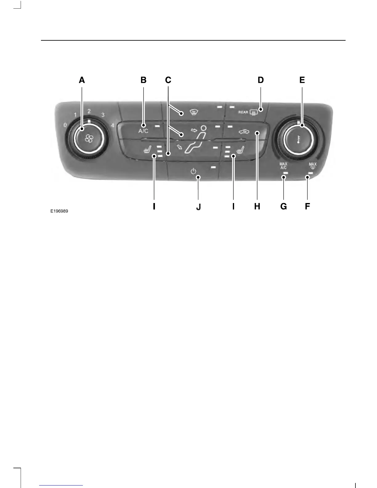 Fan speed control: Adjusts the volume of air circulated in the vehicle.A