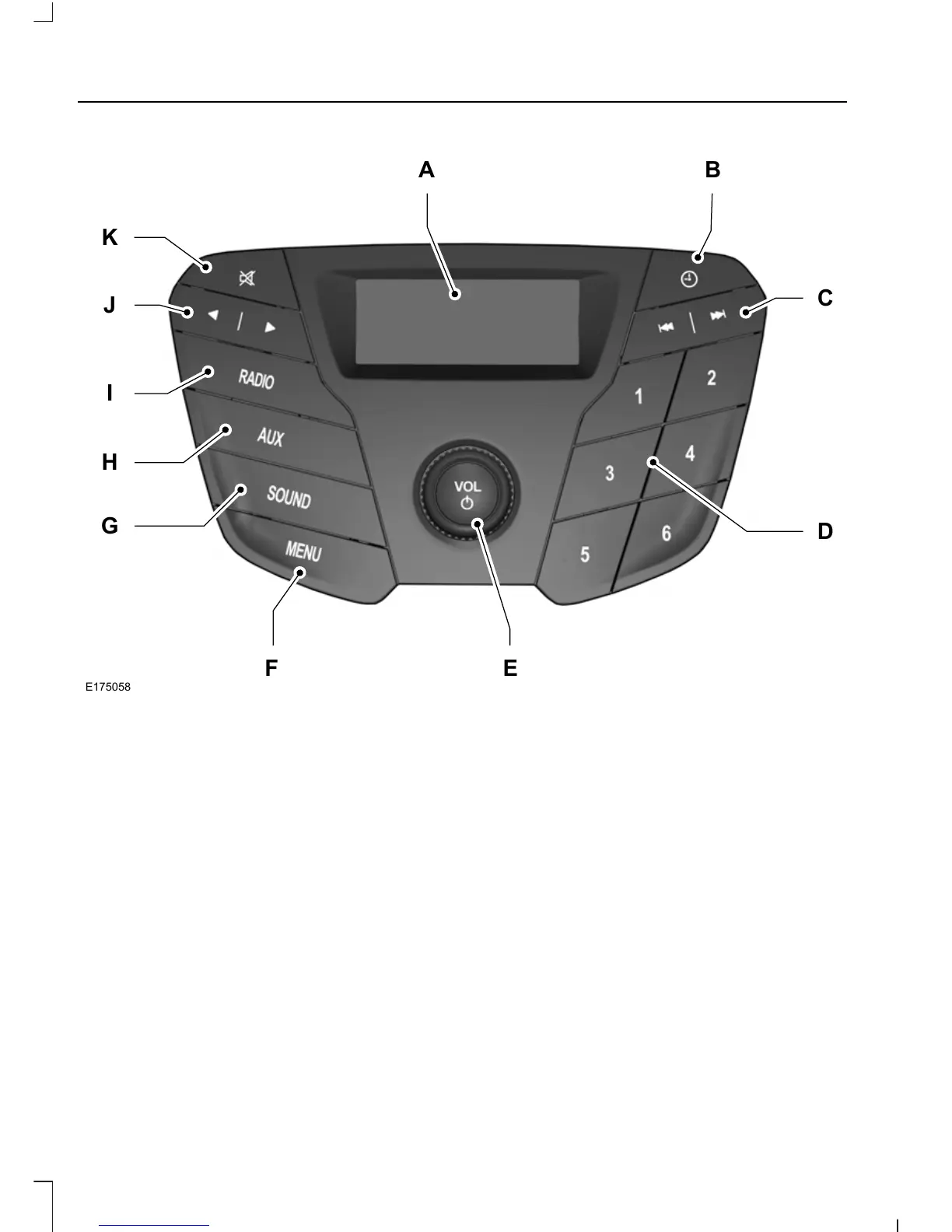 MENU: Press the button to access different audio system features.F