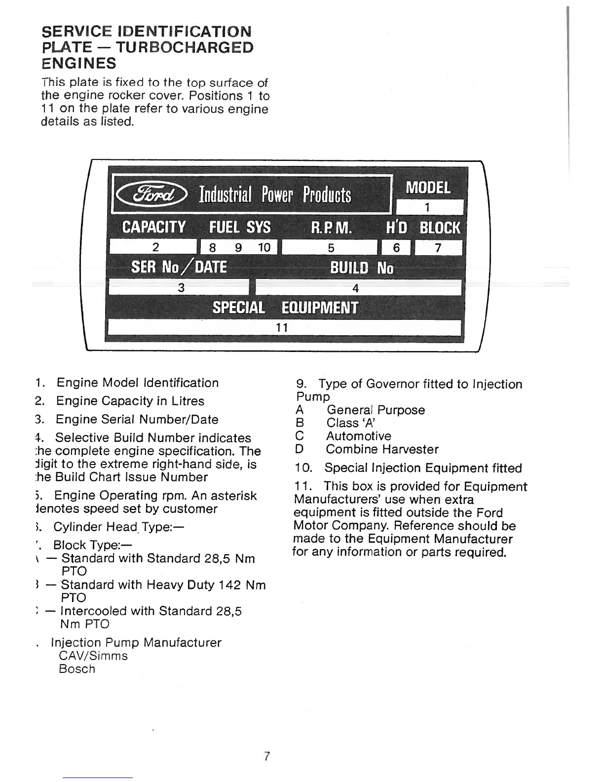 Ford 2723 - Service Identification Plate - Turbocharged Engines