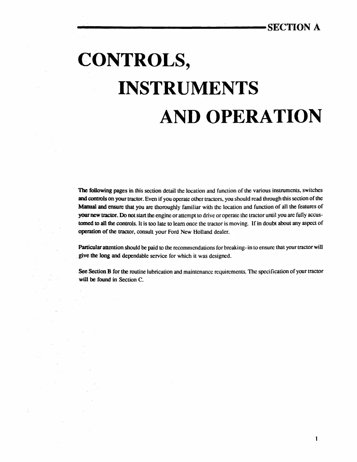 Ford 3230 - SECTION A CONTROLS, INSTRUMENTS AND OPERATION