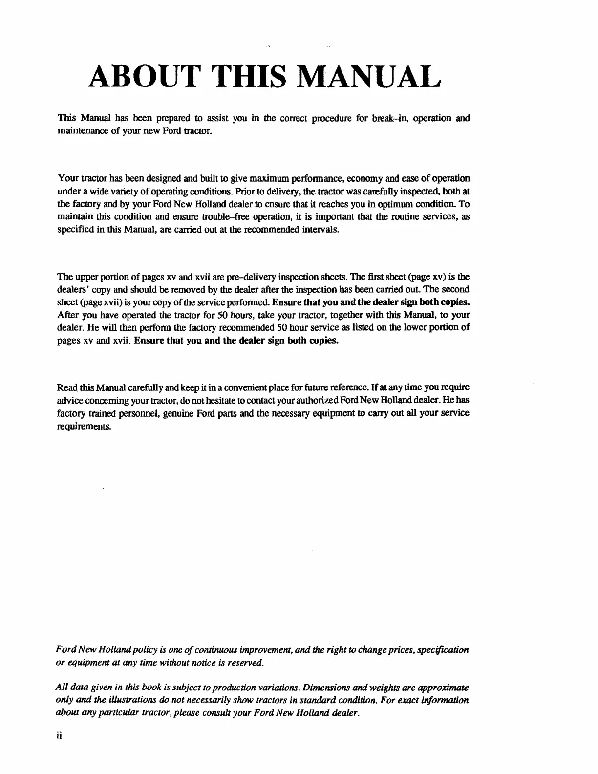 about any particular tractor, please consult your Ford New Holland dealer.