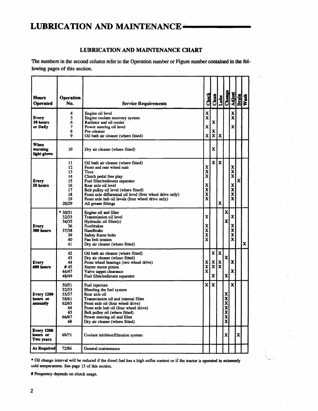 LUBRICATION AND MAINTENANCE CHART