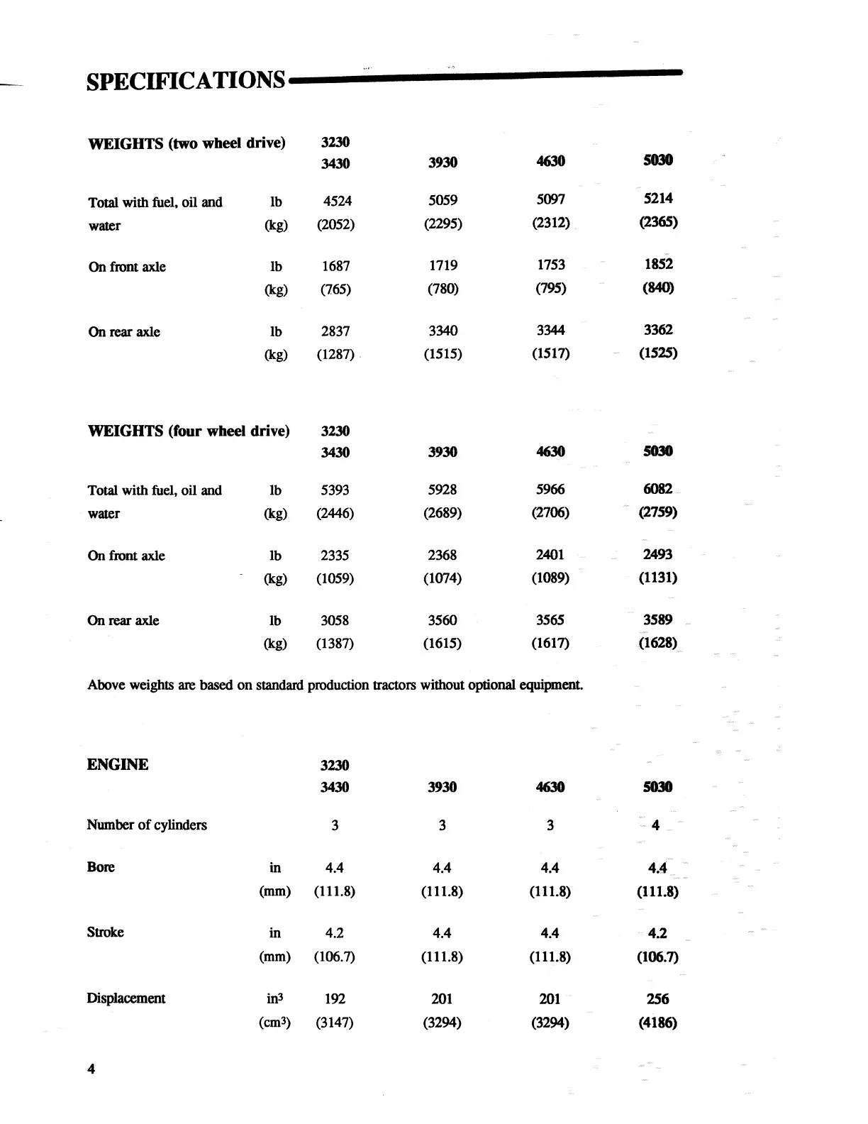 Ford 3930 - Tractor Weights and Capacities