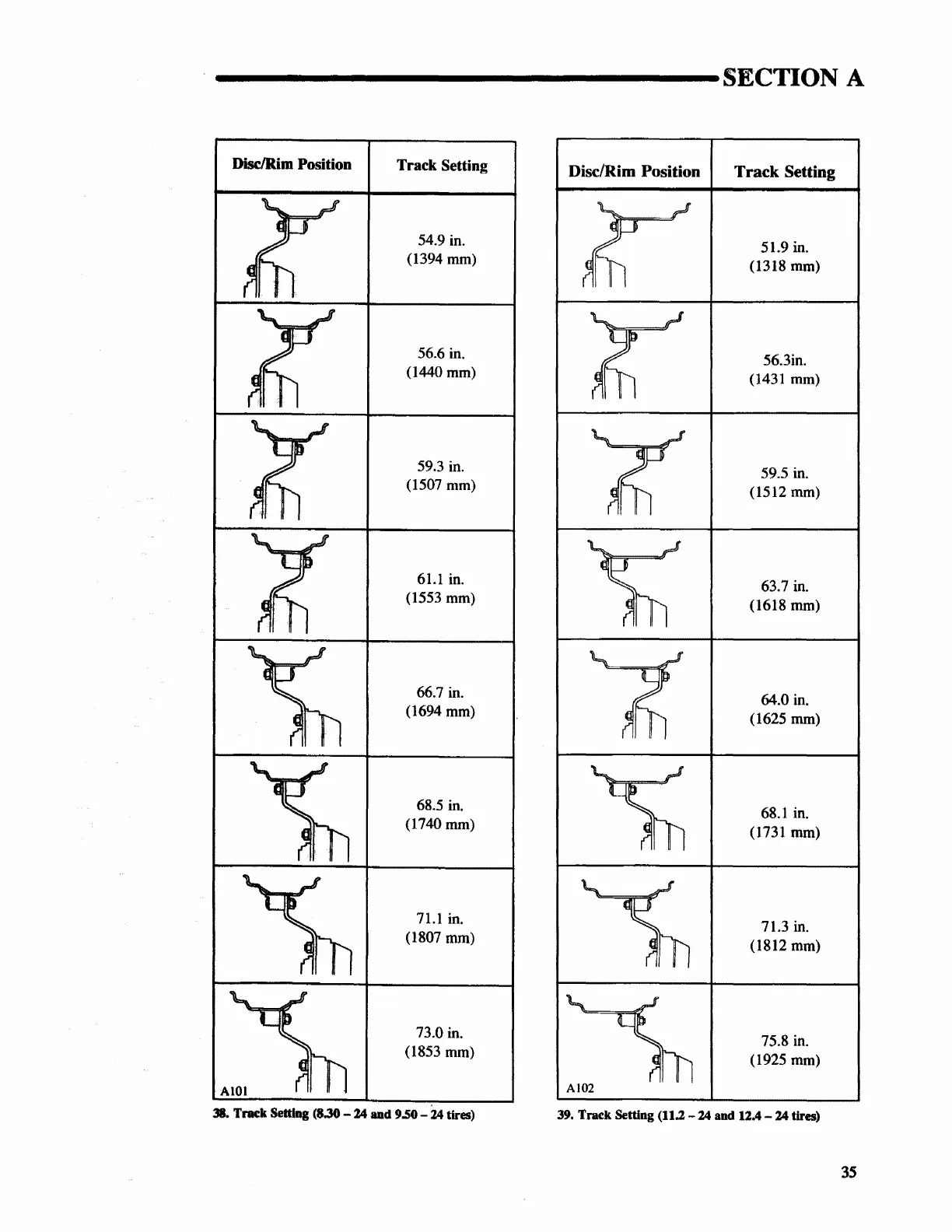 Setting (11.2 - 24 and 12A - 24 tires)
